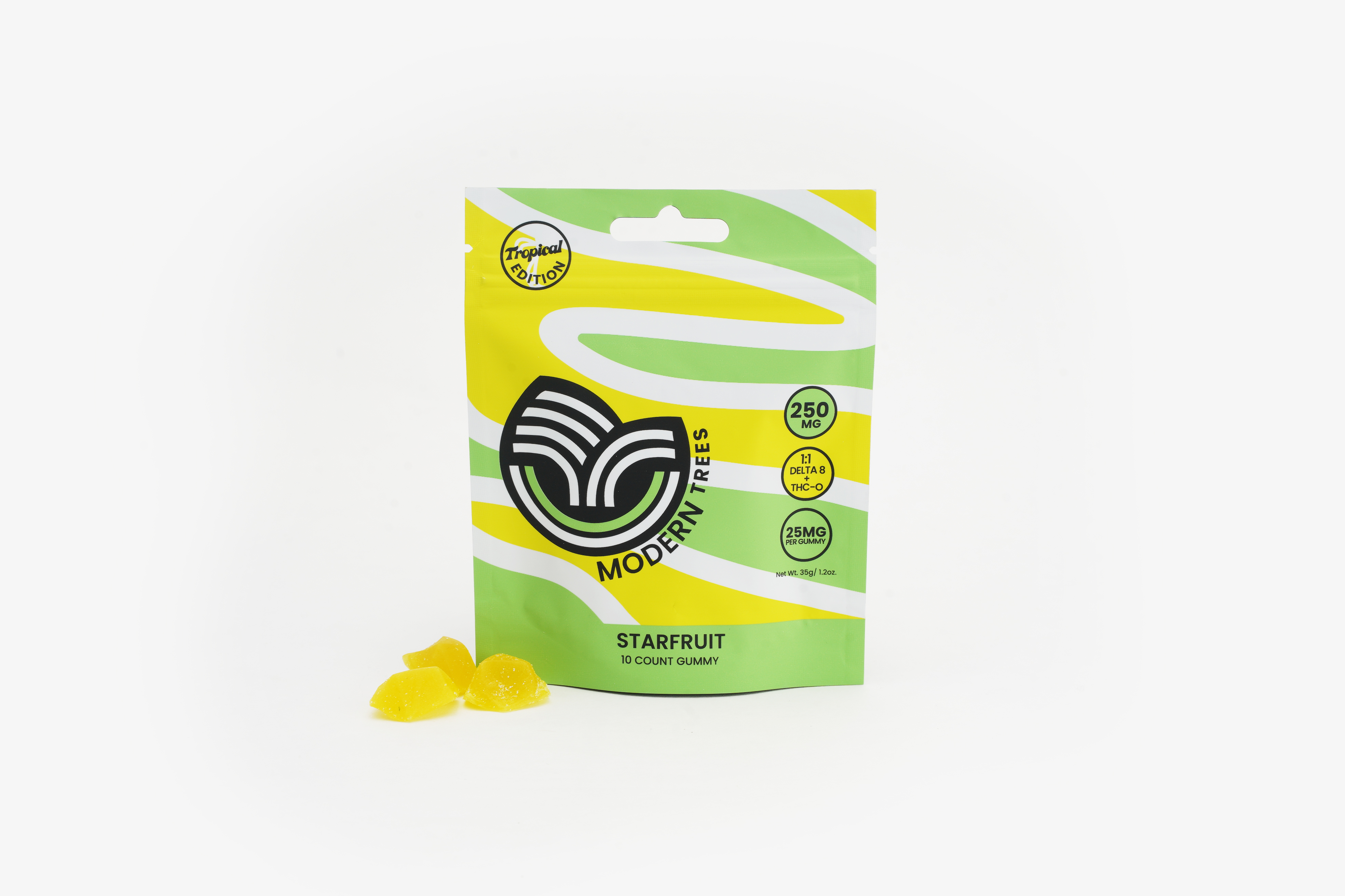 Modern Trees new tropical edition diamond gummies are a mouth-watering fun way to consume THC-0 and Delta 8. Our diamond gummies are vegan, low sugar, gluten-free, and packed with flavor.